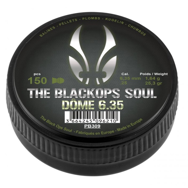Śrut Black Ops Soul Dome 6,35 mm 150 szt. to półokrągły śrut diabolo przeznaczony do strzelania na większym dystansie. Bardzo dobry stosunek jakości do ceny.