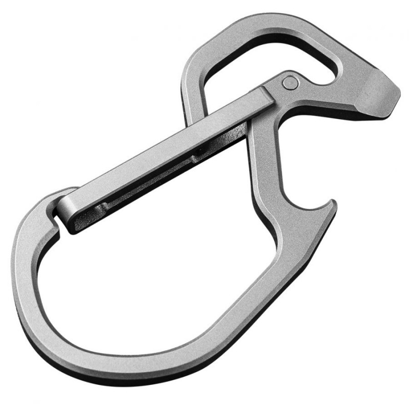 Civivi Click Carabiner Keychain Multi-Tool to dwuprzegrodowy i funkcjonalny karabińczyk z litego tytanu. Może być wykorzystany do podwieszenia pęku kluczy, można go również przypiąć do szlufki spodni lub taśm systemu MOLLE. Narzędzie wyposażono ponadto w otwieracz do butelek i płaski śrubokręt z funkcją łomu (screwdriver/prybar). Przydatność ostatniego rozwiązania zrozumie każdy, kto ułamał kiedyś sztych noża próbując podważyć coś głownią.