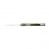 Smukła klinga o agresywnym profilu wharncliffe ma jednolite, matowe wykończenie metodą stonewashed (kąpiel w kamieniach ściernych). Dzięki zastosowaniu wąskiego sztychu, wklęsłego szlifu oraz krawędzi tnącej o niemal prostej linii, nóż ma wspaniałe właściwości tnące, a ostrze nie klinuje się w materiale.