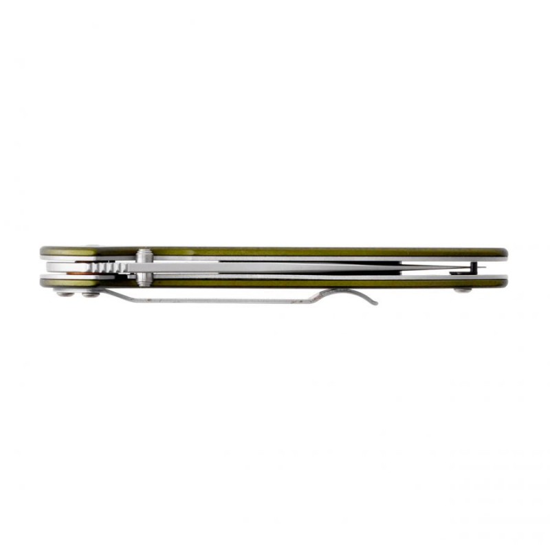Rękojeść noża tworzą okładziny z lekkiego i wytrzymałego aluminium lotniczego 6061-T6, które zamocowano do stalowych linersów, odpowiadających za sztywność i wytrzymałość konstrukcji. Elementem, który niewątpliwe przyciąga wzrok każdego pasjonata noży, są militarne okładziny w kolorze oliwkowym.