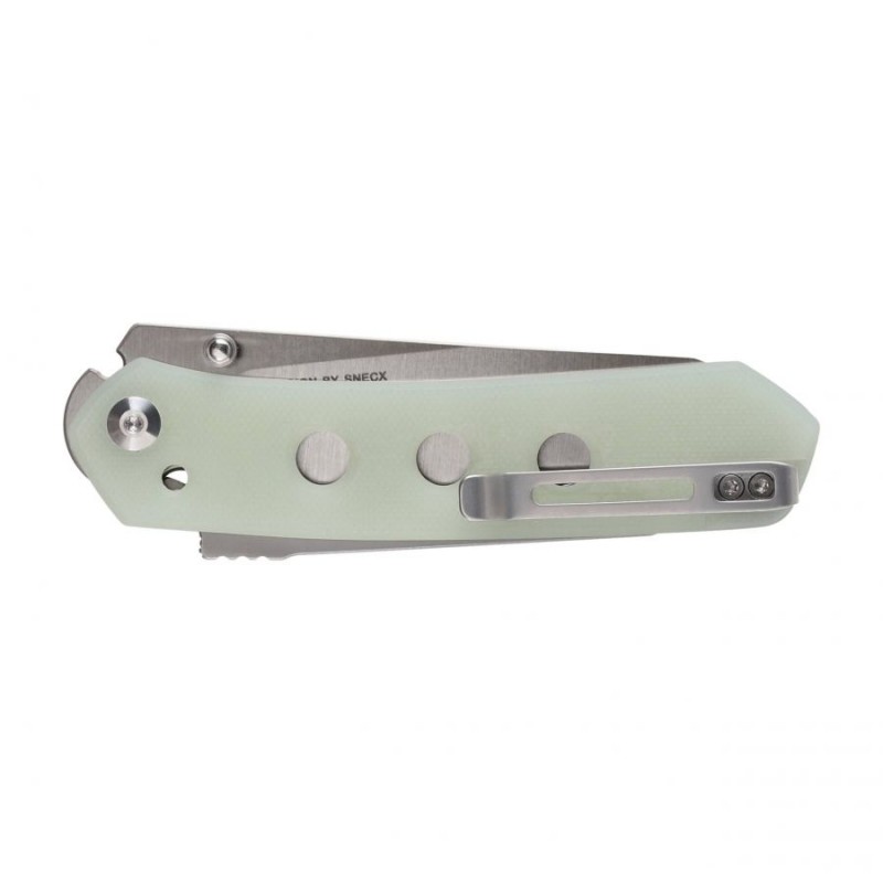 Nóż ma dwustronny klips (prawa/lewa), który umożliwia komfortowe przenoszenie foldera w pozycji Tip-Up, zahaczonego o krawędź kieszeni spodni.