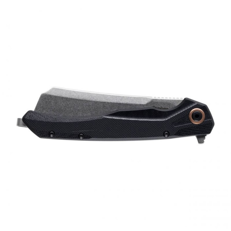 Do otwarcia noża został przewidziany teksturowany flipper, co umożliwia wygodną obsługę dowolną dłonią. Po otwarciu głownia zostaje zabezpieczona przez wysoce wytrzymałą blokadę typu frame lock. Ze względu na prostotę konstrukcji oraz w pełne zastosowanie stali charakteryzuje się ona wysoką trwałością, oraz gwarantuje wysokie bezpieczeństwo. Zastosowany klips typu deep carry umożliwia dyskretne przenoszenie noża poniżej linii kieszeni.