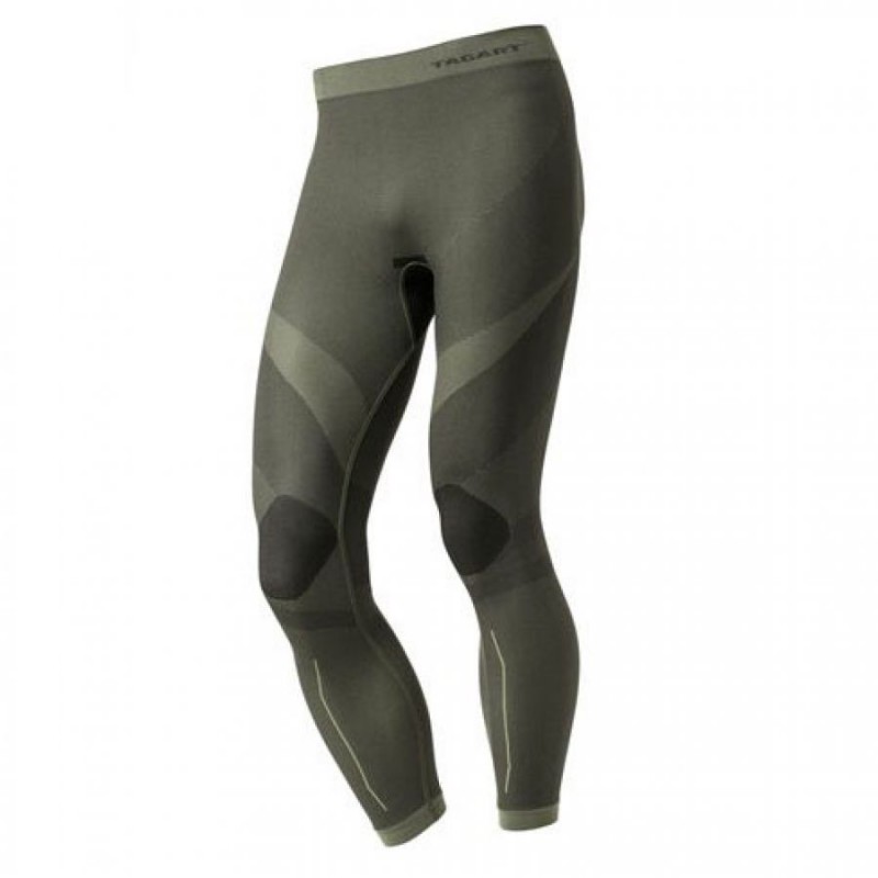Termoaktywne leginsy sportowe Tagart Woodsman bazujące na doskonale dopasowującej się do ciała mieszance poliamidu i elastanu. Wysoki komfort został uzyskany dzięki przemyślanej konstrukcji z ograniczoną do minimum ilością szwów. Skuteczne odprowadzanie wilgoci uzyskane dzięki syntetycznemu materiałowi gwarantuje nam komfort i higieniczność podczas wzmożonego wysiłku. Dzięki nowoczesnej, estetycznej formie, leginsy będą dobrym wyborem do stosowania zarówno jako warstwa docieplająca jak i odsłonięte - na przykład w połączeniu ze sportowymi szortami.