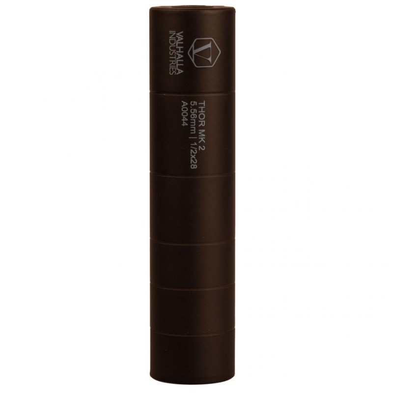 Tłumik dźwięku Valhalla Industries Thor Mk2 oferuje użytkownikowiTłumik dźwięku Valhalla Industries Thor Mk2 został stworzony z myślą o użytkowaniu na broni samopowtarzalnej - charakterystyka konstrukcji sprawia, że jest on dostosowany do działania pod intensywnym ogniem. Geometria wnętrza sprawia natomiast, że większość przechodzących przez tłumik gazów wydalana jest na zewnątrz - do komory zamkowej cofa się jedynie około 20% objętości, przez co broń wyposażona w tłumik Thor Mk2 nie jest uciążliwa podczas strzelania. Powierzchnia urządzenia została pokryta najpopularniejszym systemem powłok ceramicznych - Cerakote - który gwarantuje zabezpieczenie przed kwaśnym środowiskiem tworzonym przez pozostałości prochu.