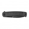 Rękojeść w składanym nożu na stronie prezentacyjnej wykonana została z włókna węglowego, zaś od strony blokady ze stali nierdzewnej.
