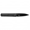 Proste, minimalistyczne okładziny wykonano przy użyciu precyzyjnych obrabiarek CNC, z lekkiego i niezwykle twardego tytanu w czarnym kolorze, zapewniając w ten sposób wysoką wytrzymałość oraz efektowny design noża.
