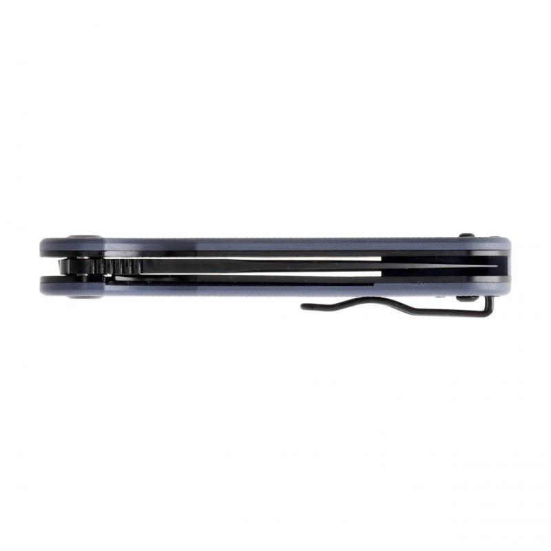 Rękojeść noża tworzą teksturowane okładziny z laminatu G10, materiału odpornego na udar mechaniczny, wysoką temperaturę oraz działanie niektórych aktywnych substancji chemicznych. Nóż waży zaledwie 109 g, dlatego nie obciąża zbytnio naszej kieszeni i nie powoduje dyskomfortu podczas codziennego przenoszenia. Do wygodnego noszenia noża edc zastosowano lekki klips drutowy z możliwością montażu po obu stronach rękojeści.