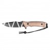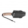 Micarta, które zostało poddane obróbce 3D. Dzięki swojemu kształtowi i żłobieniom nóż pewnie leży w dłoni i zapewnia bezpieczny chwyt w każdej sytuacji. W tylnej części rękojeści noża znajduje się otwór umożliwiający przewleczenie linki z paracordu lub smyczy zabezpieczającej.