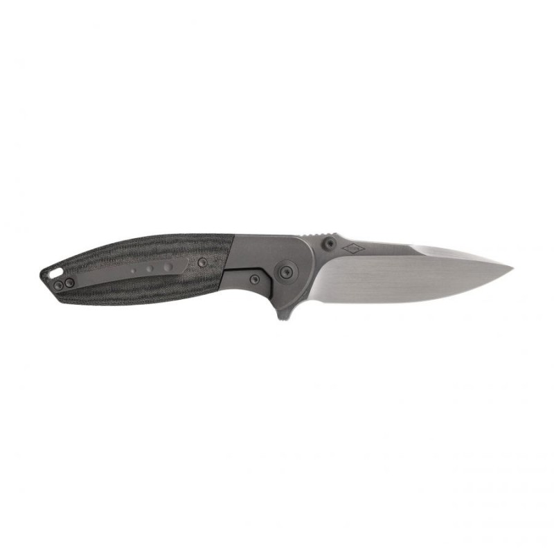 Głownię WE Nitro Mini wykuto ze stali CPM-20CV, zapewniającej znakomitą trwałość i odporność na korozję. Satynowaną klingę typu Drop Point, zahartowaną do 59-61 HRC, otwiera się za pomocą flippera lub kołka pod kciuk. Rękojeść wykonano z połączenia tytanu i micarty. Całość blokuje sprawdzony mechanizm Frame Lock.