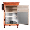 Wędzarnia ogrodowa RealHunter Smoker 200 L oferuje użytkownikowi:Konstrukcja wędzarni ogrodowej RealHunter została oparta na drewnie, co zapewnia jej estetyczny i łatwo wpasowujący się w otoczenie wygląd. Kompaktowa forma sprawia, że nie będziemy mieli żadnego problemu z rozmieszczeniem naszego urządzenia, a wbudowane kółka umożliwią jego niezwykle łatwy transport. Zostały one zastosowane jedynie po jednej stronie wędzarni - podpórki umieszczone z drugiej zagwarantują nam stabilną pozycję urządzenia nawet na twardej powierzchni.
