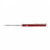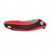 Rękojeść noża tworzą okładziny wykonane w technologii 3D z czerwonego kompozytu G10 i włókna węglowego. Zastosowany laminat szklano-epoksydowy cechuje się niewielką masą, wysoką wytrzymałością mechaniczną, odpornością na wodę, zmianę temperatur, a także działanie wielu kwasów i rozpuszczalników. Elementem przyciągającym uwagę miłośników noży są ozdobne wkładki z włókna węglowego, które nadają nożowi eleganckiego charakteru. Wkładka dystansowa wykonana z nylonu i włókna szklanego ma poprzeczne frezy, które dodatkowo poprawiają chwyt noża.