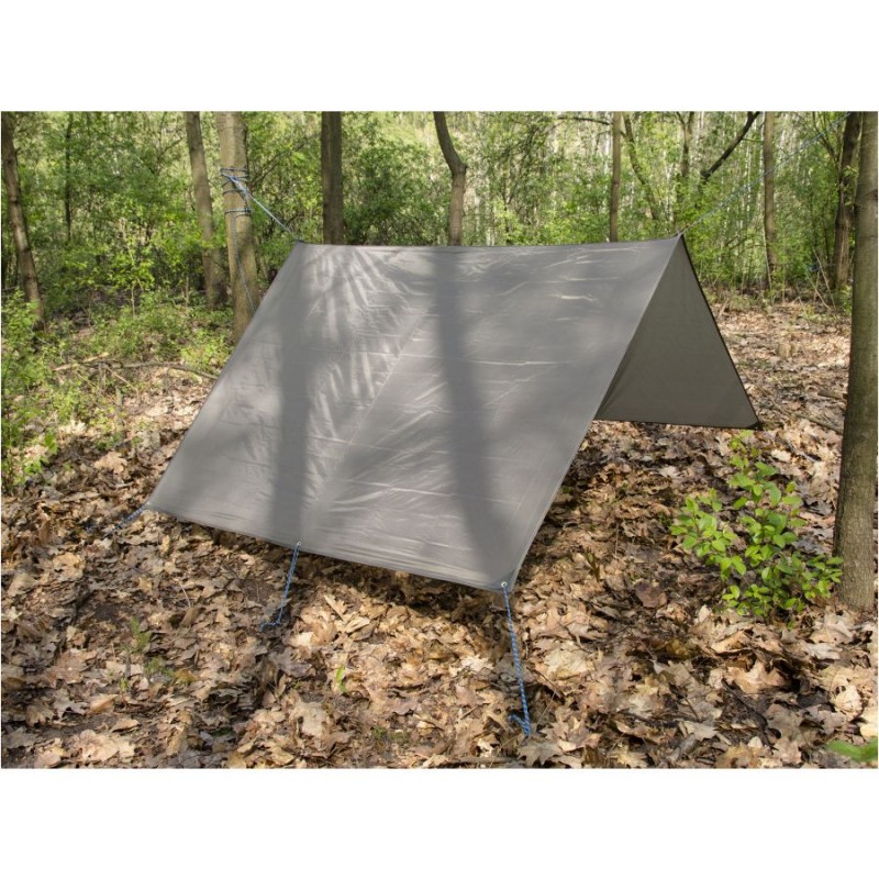 Tarp turystyczny to specjalnie spreparowany kawałek materiału technicznego, przydatny do budowy improwizowanego schronienia przed deszczem, wiatrem, śniegiem oraz słońcem. Do naciągnięcia płachty potrzebne są jedynie linki (brak w zestawie) oraz drzewa lub maszty. Po rozłożeniu zapewnia schronienie dla 1-2 osób. Zastosowany poliester 190T DU z filtrem UV jest lekki, niezwykle wytrzymały i odporny na działanie 1500 mm słupa wody. Tarp jest łatwy do spakowania, nie zajmuje dużo miejsca w plecaku, awaryjnie może być wykorzystywany np. do zbierania wody lub jako śpiwór.