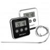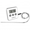 Termometr ma 18 cm sondę ze stali nierdzewnej oraz miękki przewód o długości 1,5 m. Urządzenie wyróżnia się prostą obsługą, dużym zakresem pomiaru oraz 2 przydatnymi funkcjami w postaci timera, oraz sygnalizacji osiągnięcia ustawionej temperatury lub upływ określonego czasu. W zależności od potrzeb i warunków panel termometru można postawić, zawiesić lub mocować do metalowej powierzchni za pomocą magnesu. Do zasilania termometru zastosowano popularną baterię AAA (brak w zestawie). Do sterowania służą 3 przyciski. Termometr dostępny w 2 wariantach kolorystycznych (białym i czarnym).