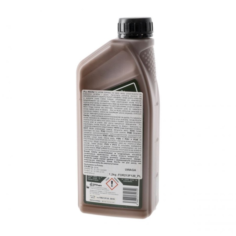 Smoła bukowa For Hunter Atra Tar 1200 g (inaczej dziegieć) znana jest myśliwym już od bardzo dawna. Ma ona intensywny zapach oraz właściwości bakteriobójcze, dzięki czemu jest bardzo skutecznym wabikiem na dziki i zwierzynę płową. Jest to poddana procesowi destylacji kora drewniana, z której otrzymuje się lepką ciecz. Aby najlepiej spełniała swoją funkcję, należy rozsmarować ją na krzakach i pniach drzew w okolicy babrzyska, kąpieliska lub nęciska z karmą.