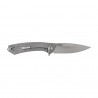 Klinga drop-point o długości 85 mm ma efektowne ostrze fałszywe. Satynowanie na głowni wykonano pod lekkim kątem, tworząc w ten sposób dyskretne i cieszące oko zdobienie. Dzięki zastosowaniu mocnego sztychu, wysokiego szlifu płaskiego oraz krawędzi tnącej o łagodnie zaokrąglonej linii, nóż z łatwością penetruje oraz płynnie tnie. Na tylnym odcinku grzbietu wykonano poprzeczne frezy, pozwalające na stabilne oparcie palca podczas pracy. Nóż po rozłożeniu ma długość 205 mm, grubość klingi w najszerszym miejscu wynosi 3,5 mm, co stanowi kompromis pomiędzy komfortem przenoszenia, funkcjonalnością oraz wytrzymałością na uszkodzenia.
