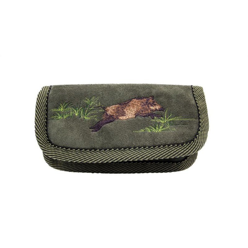 Ładownica zapinana do pasa na 6 sztuki amunicji śrutowej. Wykonana wewnątrz z codury, na zewnątrz z zamszu. Posiada wzmocnione taśmą krawędzie i cichy magnetyczny klips.