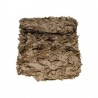 Siatka wykonana została z wytrzymałego mechanicznie, odpornego na pleśń, butwieje i mróz, sztucznego materiału 100% poliester. Nie chłonie wody i szybko wysycha. Odporna na promieniowanie UV i płowienie. Szkielet wykonany z solidnych sznurków nylonowych. Obrzeże z grubego sznura, materiał maskujący przeszywany do sznura.