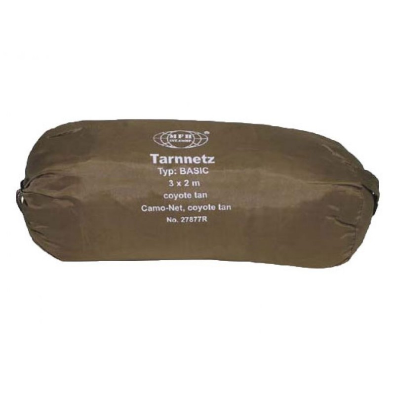 Niemiecka siatka maskująca o wymiarach 3x2metry, bardzo wytrzymała. W kolorze coyote. Przystosowana do maskowania osobistego, budynków, pojazdów lub sprzętu. Stanowi przydatny sprzęt maskujący również dla ambon myśliwych lub stanowisk strzeleckich. Na jej rogach znajdują się oczka pozwalające na łatwiejsze rozwieszanie. Dla wygody transportu pakowana w pokrowiec. Po złożeniu zajmuje mało miejsca.