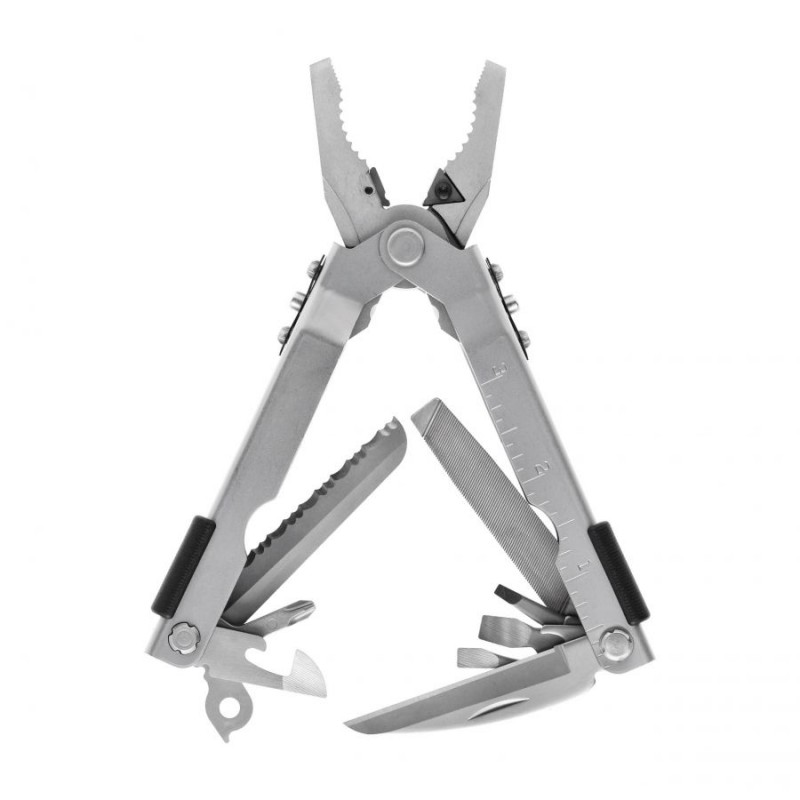 W multitoolu zastosowano dwa ostrza: gładkie i ząbkowane, zwiększając w ten sposób funkcjonalność i możliwości wykorzystania multitoola. Ząbkowana powierzchnia najlepiej sprawdzi się podczas cięcia twardych i włóknistych materiałów np. lin, taśm i pasów.