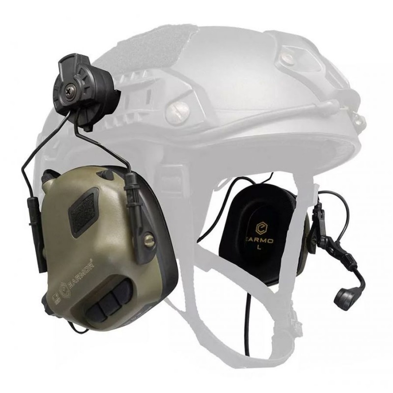 Konstrukcja zestawu słuchawkowego Earmor M32H Plus wyposażona jest w montaż do szyn hełmów FAST i podobnych.