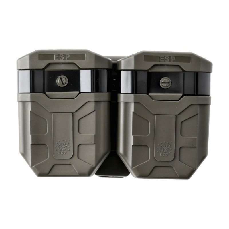 Otwarta konstrukcja ładownicy umożliwia szybki i łatwy dostęp do magazynków, a wewnętrzna sprężyna blokująca skutecznie utrzymuje je na miejscu, zapobiegając wypadnięciu.