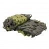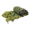 Siatka wykonana została z wytrzymałego mechanicznie, odpornego na pleśń, butwieje i mróz, sztucznego materiału 100% poliester. Nie chłonie wody i szybko wysycha. Odporna na promieniowanie UV i płowienie. Szkielet wykonany z solidnych sznurków nylonowych. Obrzeże z grubego sznura, materiał maskujący przeszywany do sznura.