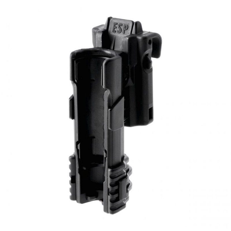 Obrotowa kabura przeznaczona do przenoszenia pałek teleskopowych ESP o długości 21, 23 i 26 cali typu Friction Lock. Wykonana z twardego, wytrzymałego na uszkodzenia mechaniczne polipropylenu (heavy-duty).