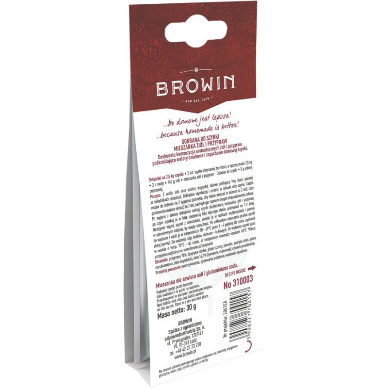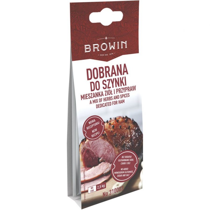 Linia mieszanek ziół i przypraw Browin to gotowe, podkreślające walory określonych rodzajów potraw kompozycje, które z pewnością doceni każdy pasjonat domowej kuchni. Mieszanka dobrana do szynki jak sama nazwa wskazuje została przygotowana z myślą o klasycznych szynkach wieprzowych. Kompozycja charakteryzuje się przyjemnym, korzennym aromatem i będzie idealną alternatywą lub uzupełnieniem dla klasycznej szynki szpikowanej goździkami.