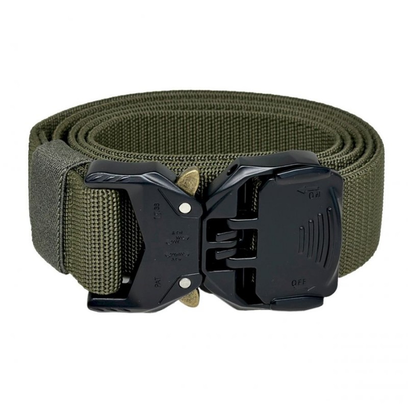 Wytrzymały pas Texar Krypton w kolorze oliwkowym, charakteryzujący się zwiększoną odpornością na przecinanie i rozrywanie.