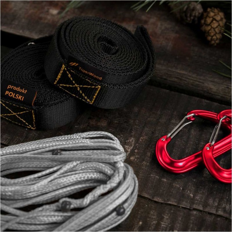 Jeśli szukasz lekkiego, a jednocześnie wygodnego systemu budowy schronienia, zestaw TigerWood Spider z pewnością zwrócą Twoją uwagę. To niezwykle łatwe w użyciu rozwiązanie łączy linki regulacyjne whoopie sling oraz taśmy umożliwiające rozwieszenie hamaka pomiędzy drzewami. Gwarantuje nam to znacząco uproszczone, a co za tym idzie szybsze rozpięcie naszego posłania, jak i ogranicza do minimum uszkodzenia kory. Rzutuje to pozytywnie nie tylko na kondycję otaczającej nas natury, ale również ogranicza ryzyko zanieczyszczenia uwalniającą się z rannego drzewa żywicą.