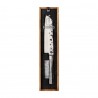 Nóż Santoku Forged Intense oferuje użytkownikowi:Jak sama nazwa wskazuje, domeną marki Forged są noże kuchenne wykonane w tradycyjnej technologii kucia. Dzięki temu zabiegowi otrzymujemy wysokiej klasy narzędzia, przewyższające znacząco modele walcowane zarówno pod kątem wytrzymałości jak i sztywności co ułatwi precyzyjne ciecie twardych materiałów. Pozostałością po procesie skuwania stali jest tekstura zdobiąca nieszlifowaną krawędź głowni, która nadaje każdemu egzemplarzowi niepowtarzalnego charakteru.