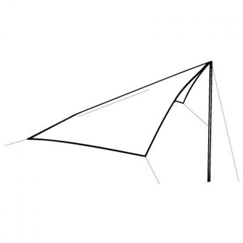 Płachta wykonana jest z wytrzymałego poliestru HydroTex AWT, który zapewnia wodoodporność na poziomie 3000 mm oraz szybsze schnięcie materiału. Tarp charakteryzuje duża wytrzymałość dzięki odciągom, regulującym napięcie materiału oraz technologii Ripstop, zapobiegającej powstawaniu uszkodzeń mechanicznych.