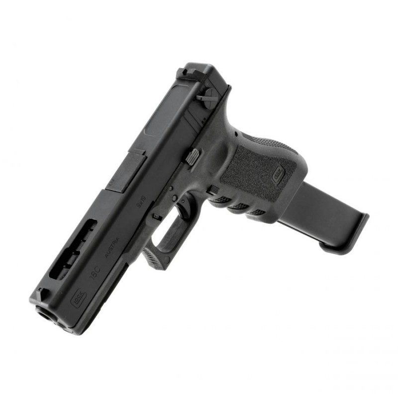 Ruchome elementy (zatrzask magazynka, dźwignia zrzutu zamka, spust z bezpiecznikiem), obsługa manualna oraz częściowe rozkładanie repliki są identyczne z prawdziwym Glockiem 18C.