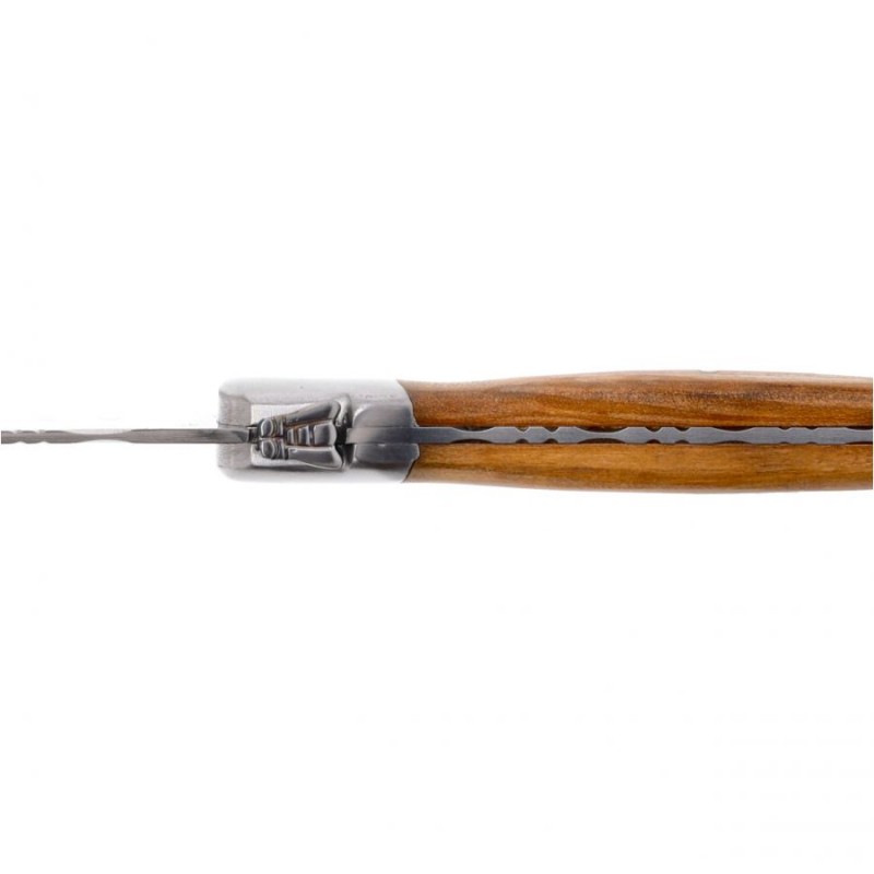 Połączenie japońskiego profilu głowni z tradycyjnym francuskim wzornictwem. Nóż Santoku Laguiole Style de Vie to niezwykle uniwersalne narzędzie, zaprojektowane głównie do siekania i pracy z warzywami, jednakże dobrze sprawdzi się również jako alternatywa dla noża szefa kuchni. Profil chwytu nawiązuje do klasycznych, prowansalskich noży typu Laguiole, a jego ergonomia zagwarantuje nam komfortową pracę. Wersja wykorzystująca wzorzyste drewno oliwne w roli okładzin rękojeści.