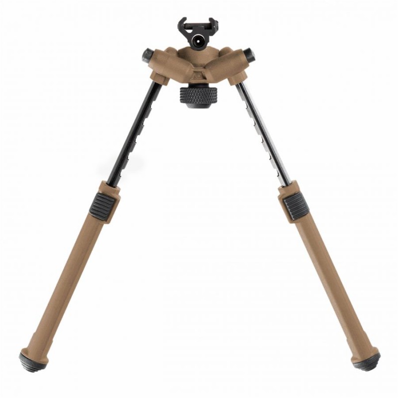 Bipod Magpul ma wysuwane nóżki, które można zablokować w 7 pozycjach wysokości. Zakres regulacji nóżek wynosi 89 mm, co pozwala na zmianę wysokości bipodu w zakresie od 173 mm do 262 mm. Dwójnóg ma ruchomą rampę, która pozwala na 50° pochylenie broni i 40° obrót poziomy. Strzelec może w prosty i szybki sposób zablokować podstawę (całkowicie na sztywno) lub częściowo (blokada obrotu z zachowaniem przechyłu) za pomocą radełkowanego pokrętła zlokalizowanego między nóżkami. Dwójnóg posiada wygodną i szybką w użyciu blokadę pozycji, w postaci sprężynującego przycisku. Stabilne ustawienia na podłożu zapewniają antypoślizgowe gumowane stopki, kompatybilne ze stopkami marki Atlas (poza Atlas 5-H). Podczas transportu nogi dwójnogu można złożyć do przodu, co zmniejsza profil broni i pozwala na jej stabilne oparcie na przesłonie itp.