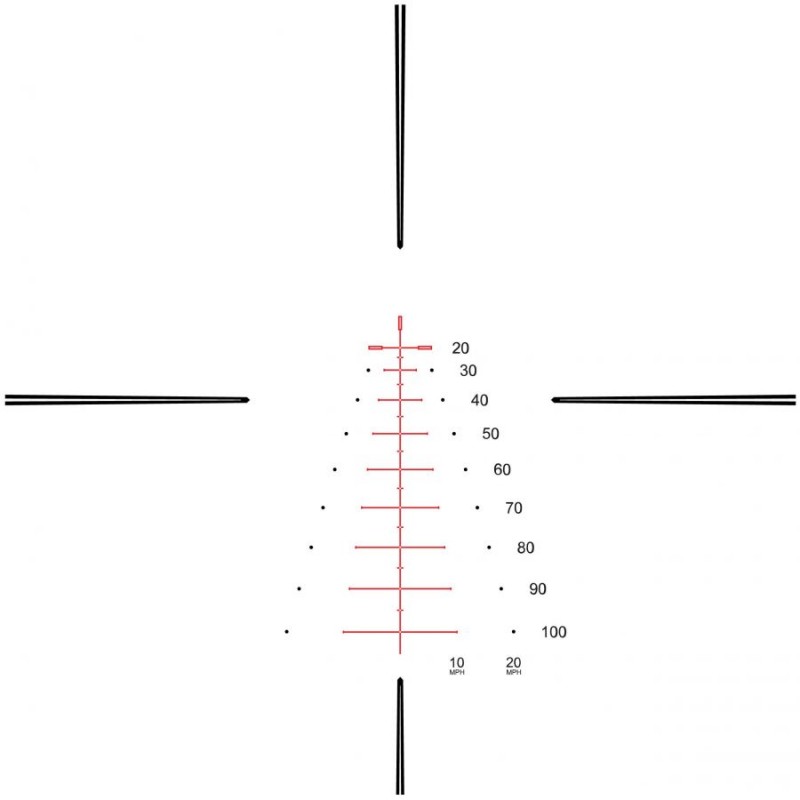 Luneta ma podświetlaną na czerwono siatkę celowniczą XB30 Compact SR w drugim planie, z nastawami do precyzyjnego na dystansie od 18 do 91 m (zero na 18 m) oraz stałą paralaksą ustawioną na 46 m. Siatka składa się z 4 zwężających się ku środkowi ramion, podświetlanego krzyża celowniczego z precyzyjną podziałką zasięgu (co 5 jardów) oraz znacznikami do nanoszenia poprawek na wiatr. Na okularze znajduje się pierścień do regulacji dioptrii oraz blokowane pokrętło (zgłoszone do opatentowania) pełniące 2 funkcję: zmiany powiększenia, oraz definiowania prędkości bełtów wystrzeliwanych z naszej kuszy. Aby precyzyjnie zgrać siatkę celowniczą z kuszą, wystarczy ustawić pierścień powiększenia/ FPS na wartości odpowiadającej parametrom naszych strzałów. Po wyzerowaniu krzyża na 50 jardach (45 m) i ustawieniu prędkości początkowej FPS, wskaźniki krzyża będą precyzyjnie dopasowane do trajektorii opadu bełtów.