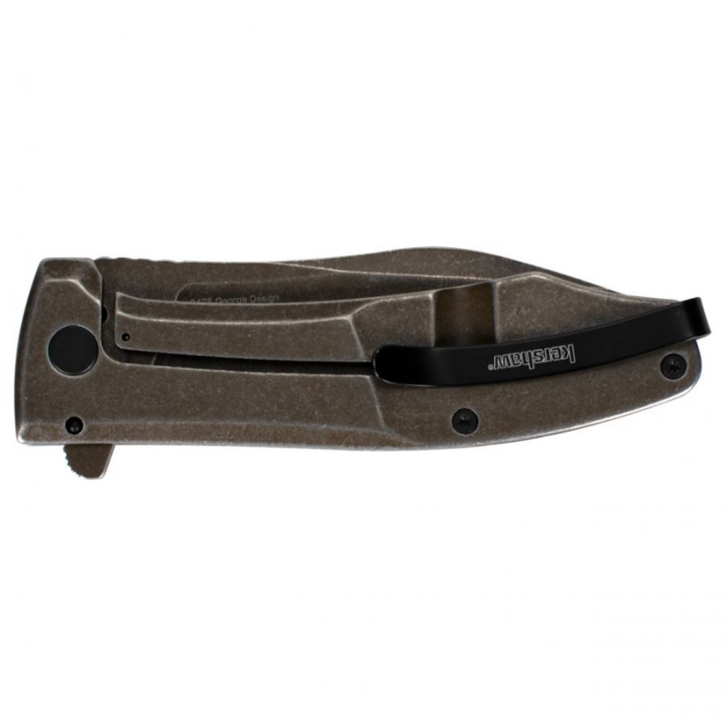 Kershaw Boilermaker 3475 ma profilowane okładziny ze stali nierdzewnej pokrytej brązową powłoką PVD z wykończeniem stonewashed. Chwyt ma otwartą konstrukcję z charakterystycznymi krzyżowymi frezami przypominającymi industrialną konstrukcję. Dodatkowe wycięcie znajduje się w przedniej chwytu i odsłania wycięte laserowo logo Kershaw.