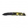 Nóż został wyposażony w ostrze do przecinania pasów oraz zbijak do szyb.