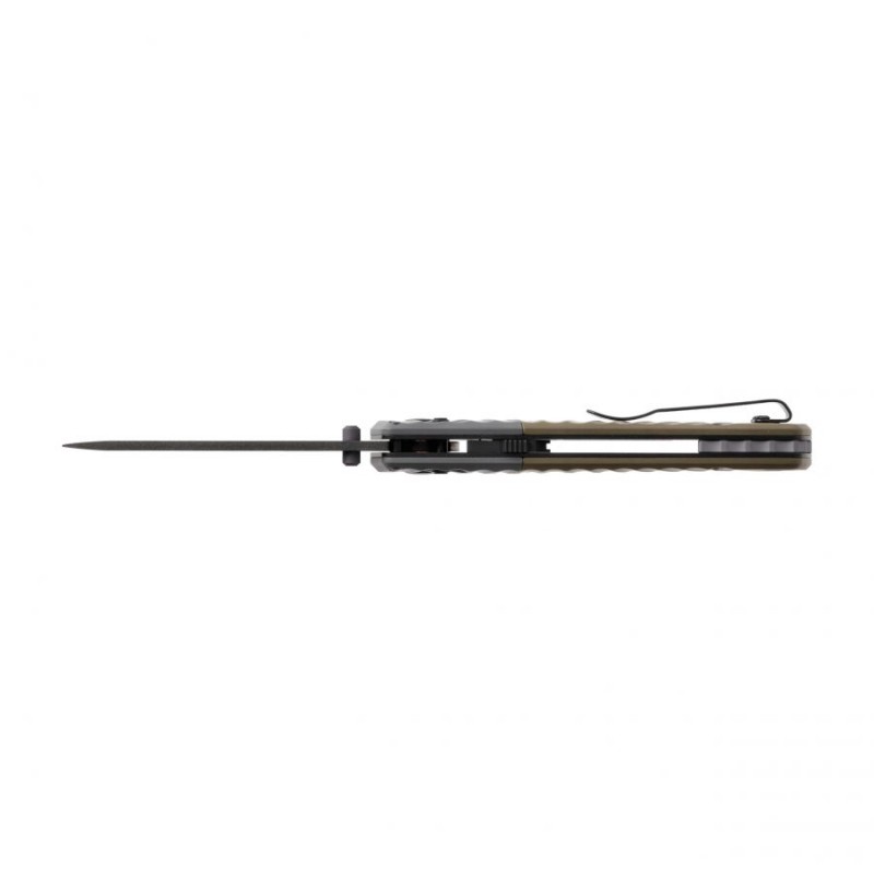 Nóż ma wysoko osadzony klips (z możliwością przełożenia na drugą stronę) ułatwiający dyskretne przenoszenie noża w kieszeni oraz mocowanie na pasie lub plecaku.