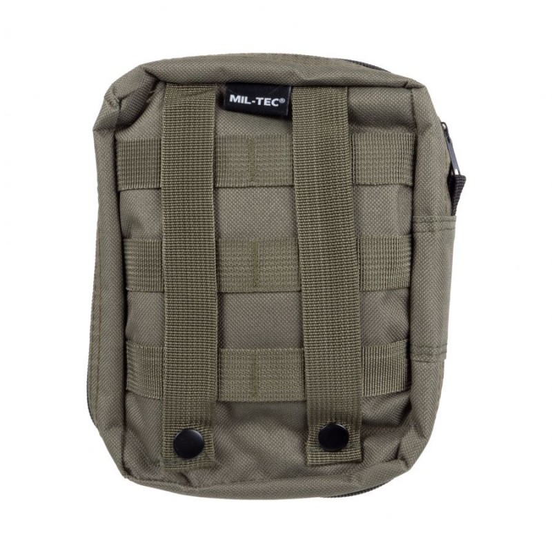 Apteczka Mil-Tec duża oliwkowa to rozbudowany zestaw pierwszej pomocy, pozwalający na przenoszenie medykamentów dla kilkuosobowej grupy.