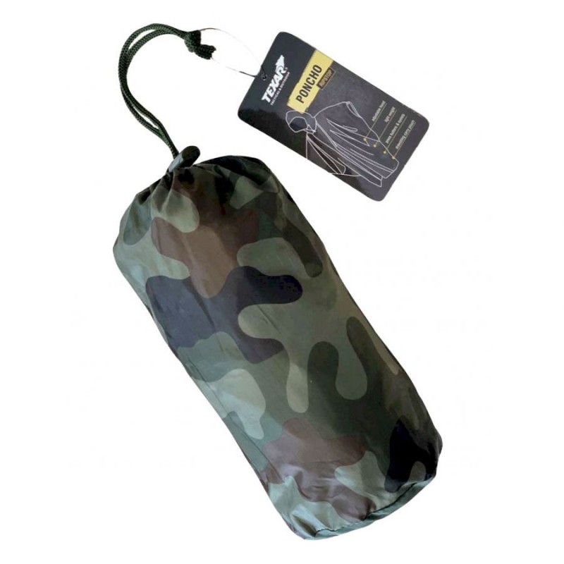 Ponczo Texar ripstop to nieprzemakalna, szybkoschnąca peleryna chroniąca nas i nasze ubrania przed zamoknięciem. Została skonstruowana z powlekanego poliestru typu ripstop, dzięki czemu gwarantuje swoją wodoodporność. W miejscach łączeń szwy zostały dodatkowe podklejone, dzięki czemu żadna kropla wody nie ma prawda przedostać się do środka. Kaptur wyposażono w ściągacz, a rękawy w metalowe oczka z możliwością zamontowania dodatkowego ściągacza oraz zatrzaski, dla wygody użytkowania. W zestawie dodany został pokrowiec, dzięki czemu przechowywanie poncza nie zajmuje nam wiele miejsca.