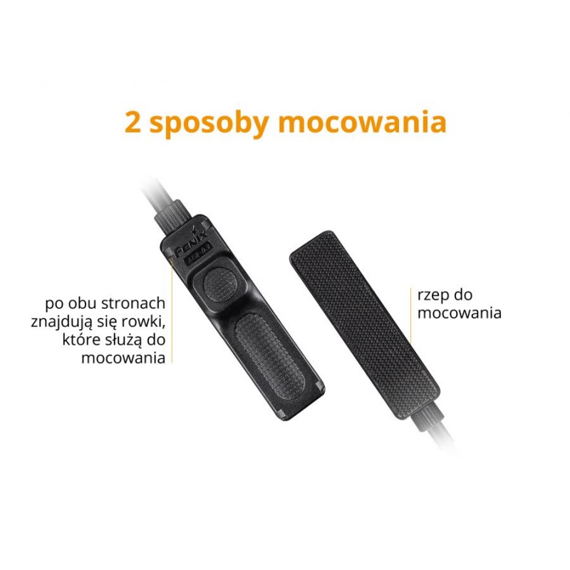 Adapter dokręcany do latarek (gwint TR22,4×1,5 mm) wykonano z aluminium T6. Metal poddano twardemu anodowaniu HA-III co gwarantuje bardzo wysoką odporność na ścieranie i zarysowania. Włącznik można mocować do broni na dwa sposoby tj.