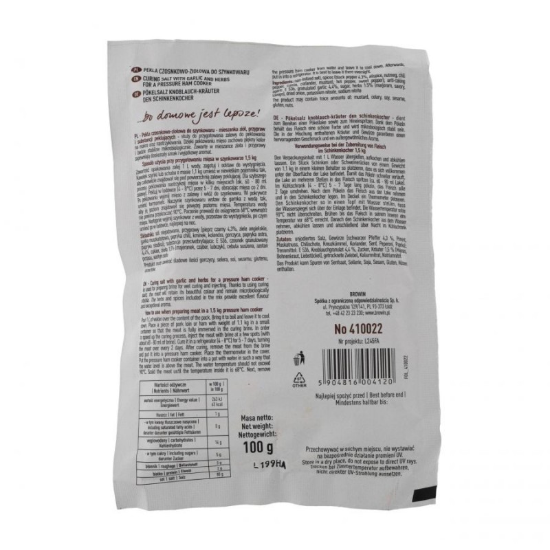 Pekla czosnkowo-ziołowa Browin to prosty w użyciu dodatek, pozwalając szybko i łatwo przygotować idealną zalewę do parzonych i wędzonych mięs, wydobywając z nich wyśmienity smak. Produkt oferuje wiele możliwości obróbki, świetnie sprawdzając się nie tylko w parzeniu mięs w szynkowarze, ale także w wędzeniu, peklowaniu czy pieczeniu (w temperaturze poniżej 150°C).