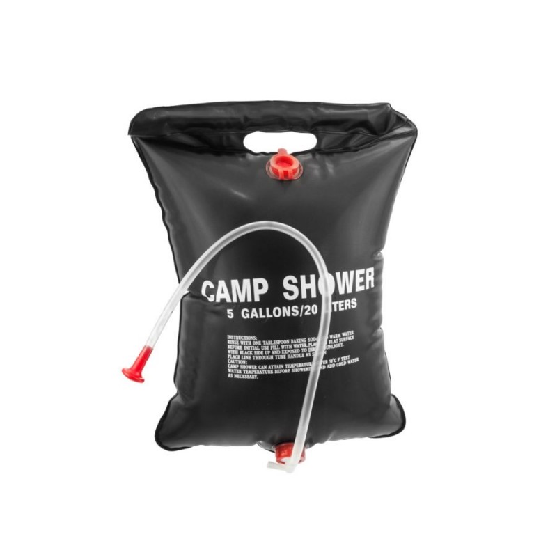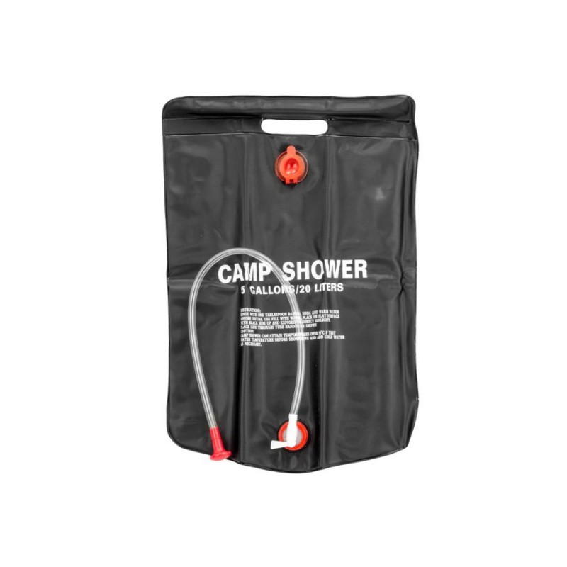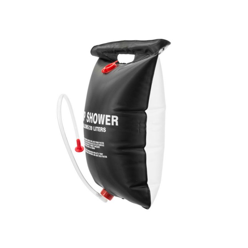 Prysznic turystyczny o pojemności 20 l, jest praktycznym urządzeniem, dzięki któremu można wykąpać się tam, gdzie nie mamy bieżącej wody i prądu. Wykonany jest z wytrzymałego i niezwykle lekkiego PCV, woda w pojemniku nagrzewa się od promieni słonecznych. Idealny dodatek do wypraw survivalowych, który możesz mieć ze sobą zawsze w plecaku.