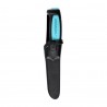 Ergonomiczną rękojeść pokryto teksturowanym tworzywem sztucznym, co zapewnia pewny chwyt w każdej sytuacji. Manipulujący nożem użytkownik, niezależnie od warunków, może czuć się pewnie i komfortowo. W komplecie znajduje się czarna pochwa wykonana z tworzywa sztucznego, która ułatwia wygodne przenoszenie noża.