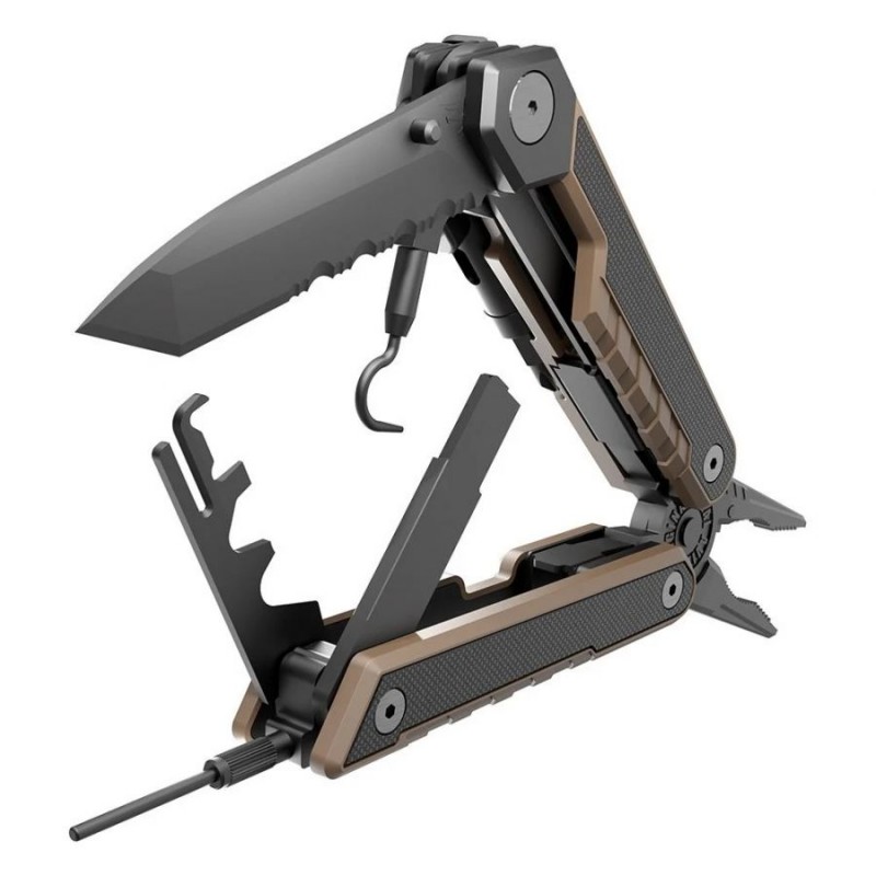 Możliwości multitoola nie ograniczają się jedynie do konserwacji broni - model wyposażony jest również w szereg akcesoriów charakterystycznych dla tego typu narzędzia. Zestaw dwunastu wymiennych bitów przyda się zarówno na co dzień, jak i podczas przekładania optyki na broni. Kombinerki z węglikowym przecinakiem do drutu okażą się przydatne podczas działań na strzelnicy, chociażby podczas korekcji stojaków na tarcze. Zintegrowane ostrze noża z częściowo ząbkowaną krawędzią tnącą okaże się pomocne zarówno podczas treningu strzeleckiego, jak i w codziennym funkcjonowaniu. Dzięki dołączonemu nylonowemu pokrowcowi multitool Real Avid AR-15 Tool może być zawsze przy nas gotowy do działania.