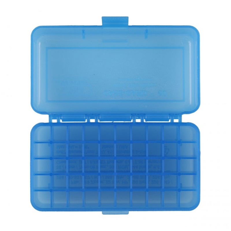 Pudełko na amunicję MTM RS-50-24 to proste i solidne etui na 50 sztuk amunicji kulowej. Wykonane z przeźroczystego, zabarwionego na niebiesko tworzywa umożliwia wygodny transport amunicji.