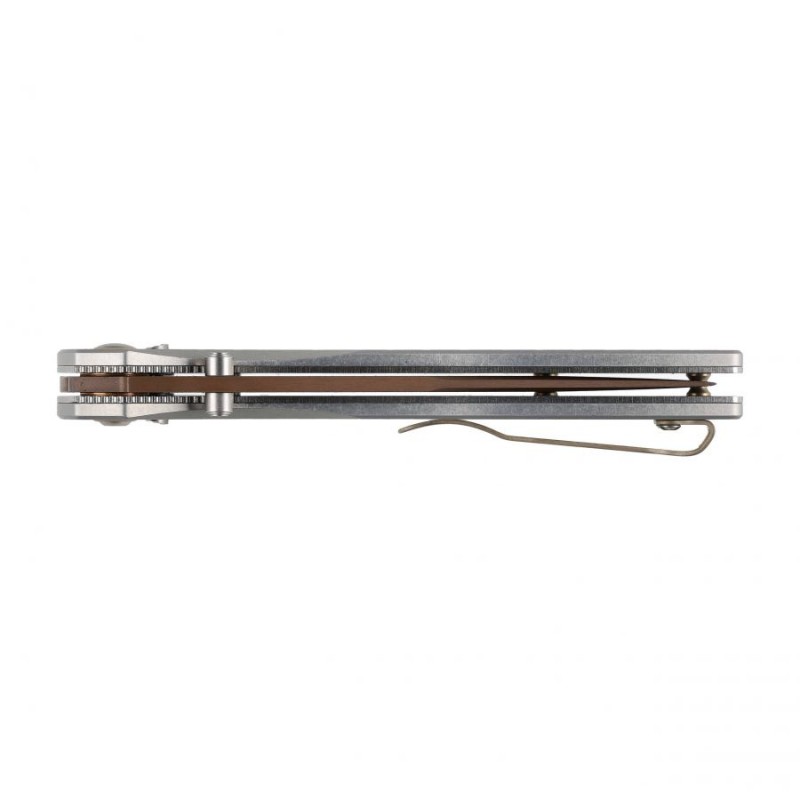Rękojeść noża tworzą okładziny z lekkiego i wytrzymałego aluminium lotniczego 6061-T6, które zamocowano do stalowych linersów, odpowiadających za sztywność i wytrzymałość konstrukcji. Na powierzchni okładzin występuje frezowanie, które zwiększa pewność chwytu mokrymi lub zabrudzonymi dłońmi. Dodatkowo kołek pod kciuk oraz sworzeń blokady Axis Lock również poddano satynowaniu, aby stanowiły spójność wizualną z aluminiowymi okładzinami noża.
