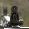 Przyrządy systemu MBUS Pro charakteryzują się składaną konstrukcją - tzw. flip-up. Umożliwia to pozostawienie przyrządów w pozycji zamkniętej podczas korzystania z kolimatora, oraz szybkie ich otwarcie w sytuacji awaryjnej. Wysokość w standardzie A2 sprawia, że przyrządy będą doskonale współpracować ze stałymi muszkami karabinków AR-15, jak i tworzyć układ co-witness wraz z kolimatorem i składaną muszką MBUS Pro. Przeziernik posiada możliwość łatwej poziomej regulacji przy pomocy wygodnego pokrętła. Sprawia to, że możemy sprawnie ustawić zero bez żadnych narzędzi i niezależnie od warunków.