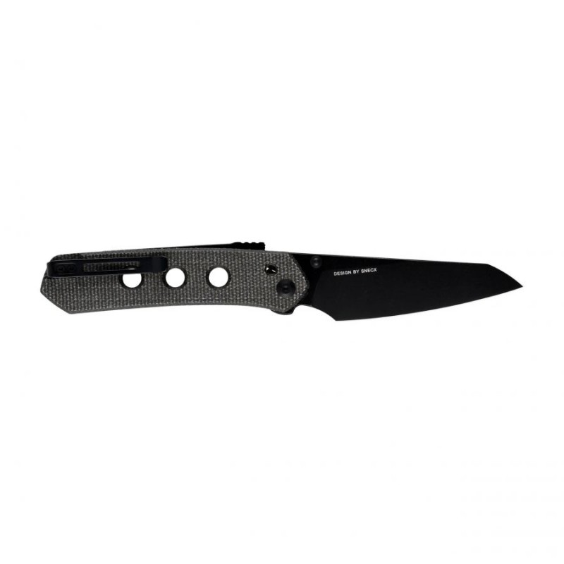 Nóż ma dwustronny klips (prawa/lewa), który umożliwia komfortowe przenoszenie noża w pozycji tip-up, zahaczonego o krawędź kieszeni spodni.